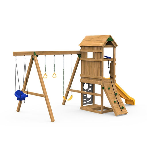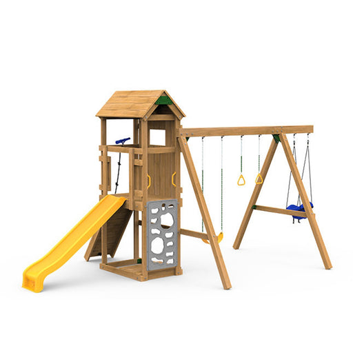 View full detailsAvenlur Hawthorn XL Wooden Outdoor Playset – Slide, Swing, Climbing Wall & Monkey Bars | Backyard Playground Set for Kids HAWTHORNXL-NAT-SLIDE